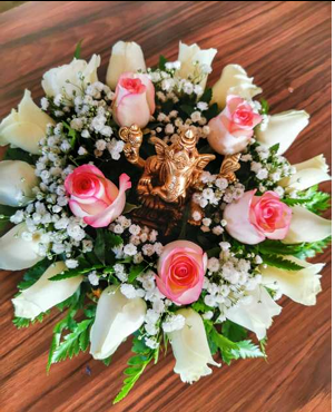 Fresh flower bouquet suitable for prayer offerings and temple ceremonies.