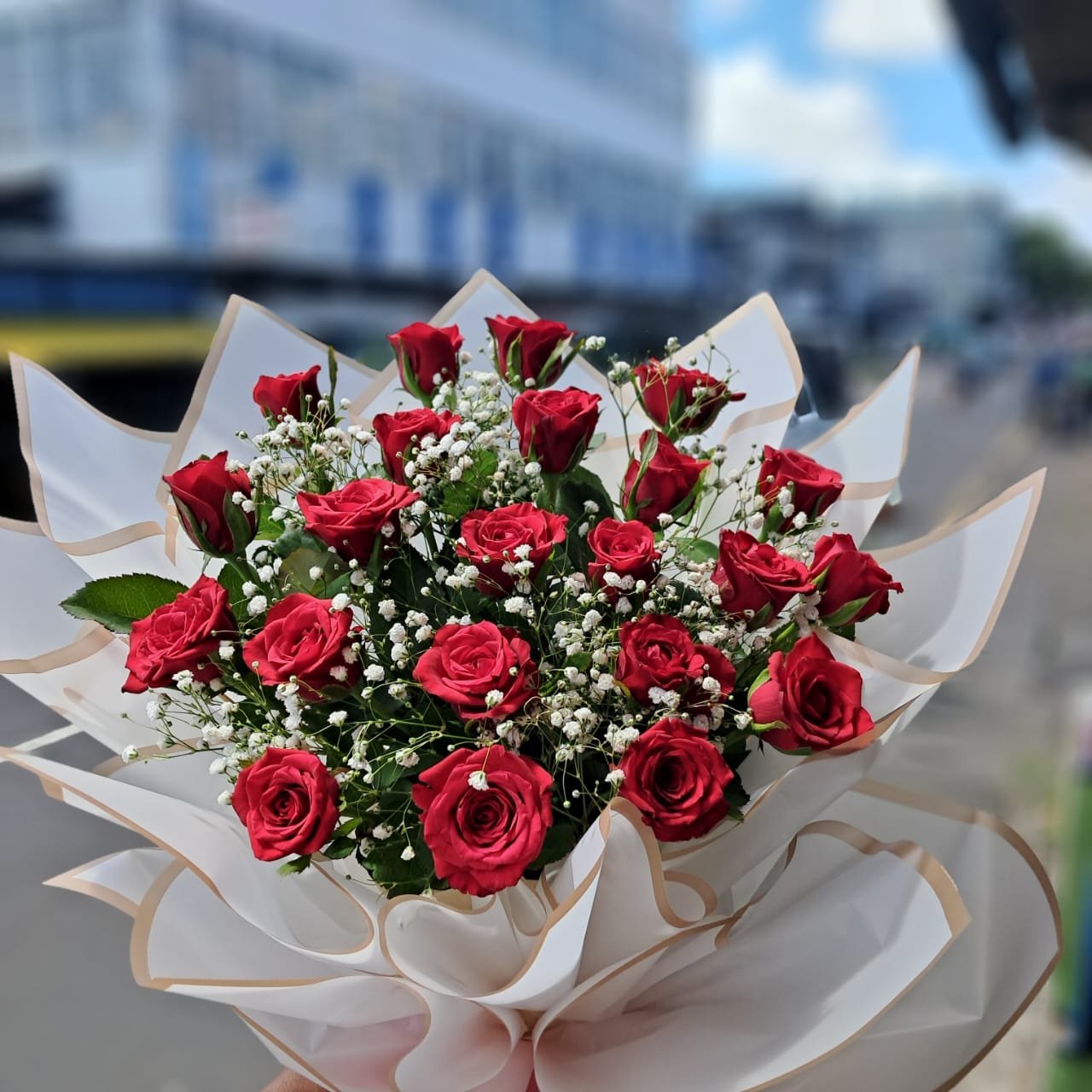 Make your loved one smile with this elegant bouquet of fresh red roses. Carefully arranged and wrapped in premium floral paper, this bouquet symbolizes love and passion. Perfect for Valentine’s Day, anniversaries, birthdays, or simply to express your feelings.