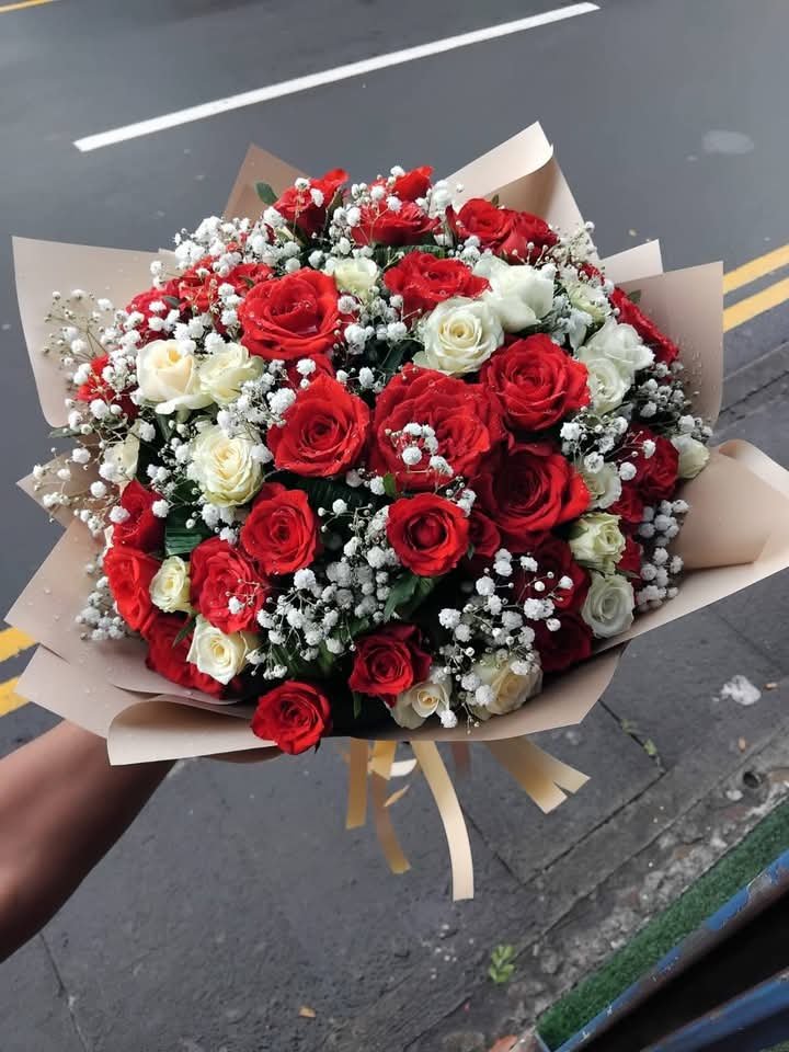 A stunning bouquet combining red and white roses with delicate fillers. A beautiful choice for birthdays or celebrations.