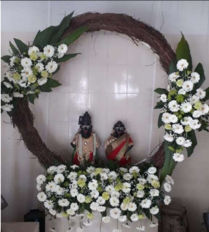 Floral ring decoration for sacred display.